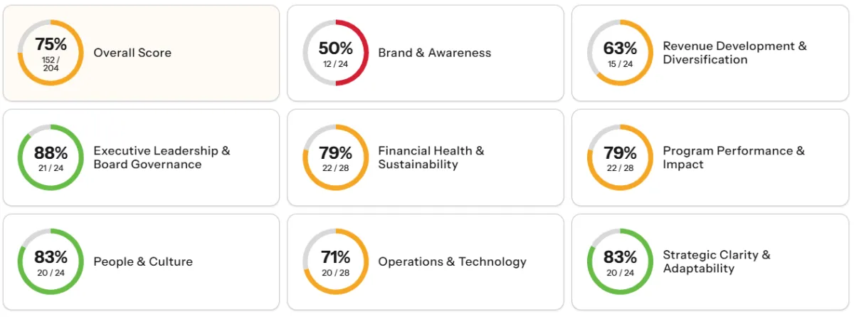 A free, 10-minute assessment that gives you an instant snapshot across 8 pillars of nonprofit business fundamentals—plus prioritized next steps.